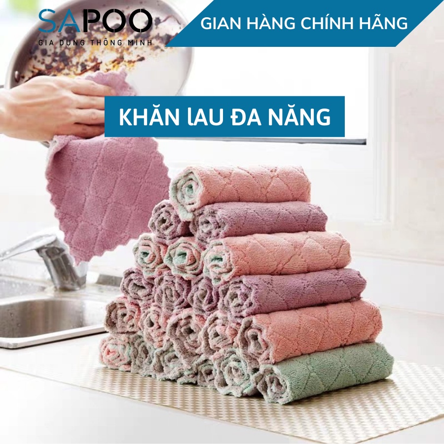 Khăn lau đa năng bếp, bát đĩa, cốc chén thấm nước chống dính dầu mỡ hai mặt - Gia Dụng SAPOO free ship